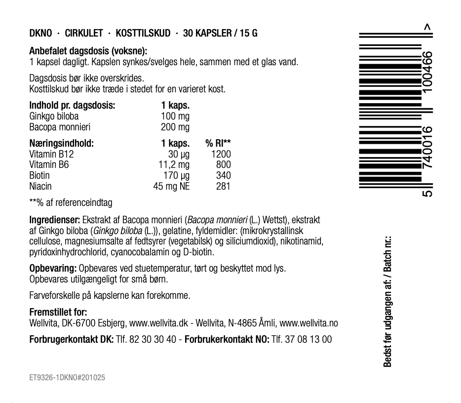 Anbefalet dagsdosis (voksne): 1 kapsel dagligt
