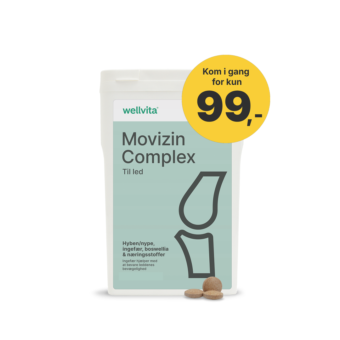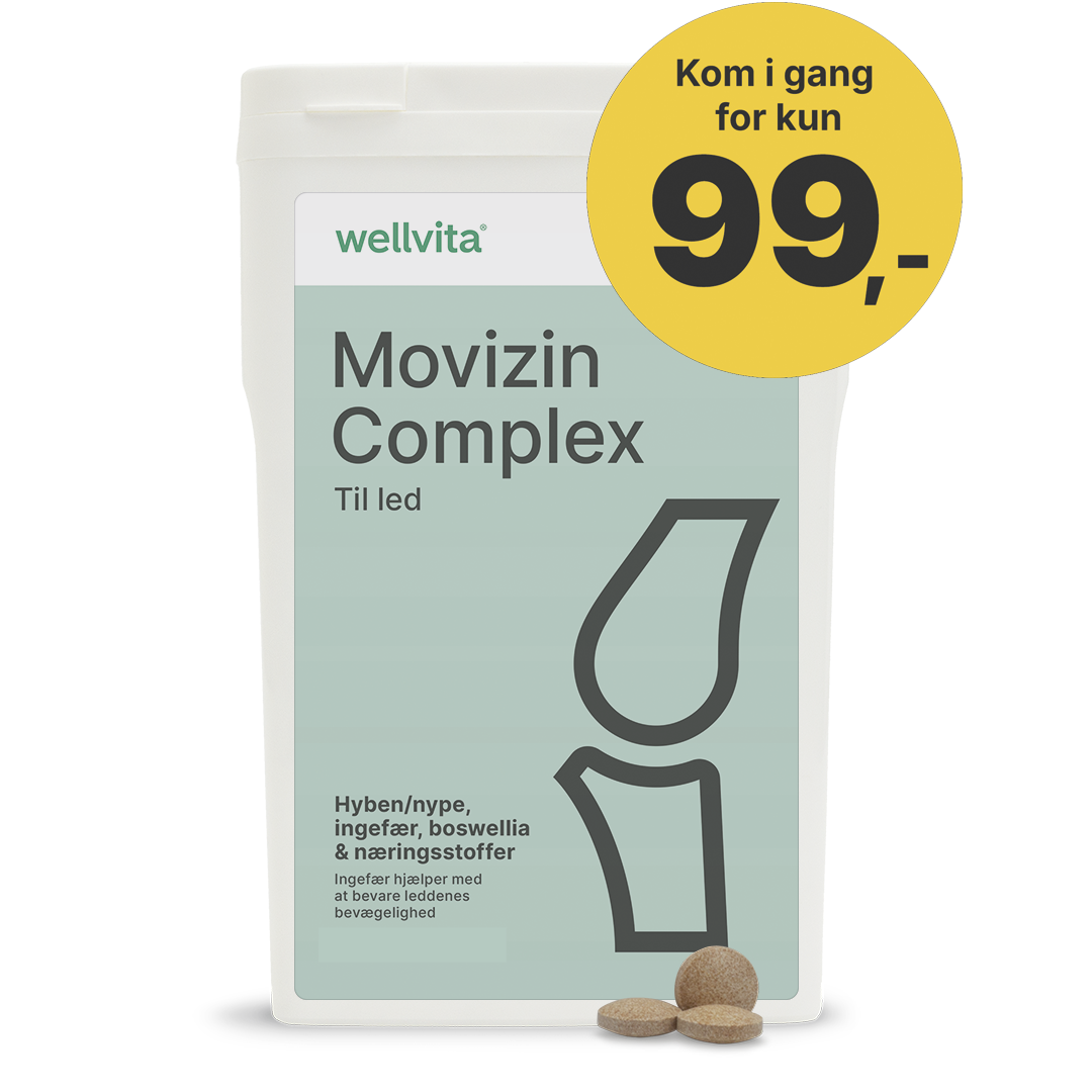 Movizin Complex er også rig på c-vitamin, der har betydning for dannelsen af bruskvæv, som er den elastiske del af dine led.