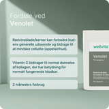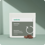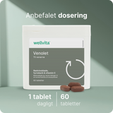 Venolet er baseret på rødvinsblade/kerner, fyrrebark og vitamin C. Ingredienserne bidrager til en normal funktion af venesystemet, blodkar og kredsløbet og giver en god blodgennemstrømning i benene - faktorer, der modvirker trætte og tunge ben. Rødvinsblade/kerner kan desuden forbedre hudens generelle udseende samt bidrage til at mindske cellulite (appelsinhud). Vitamin C medvirker til normal dannelse af kollagen, der har betydning for normalt fungerende blodkar.