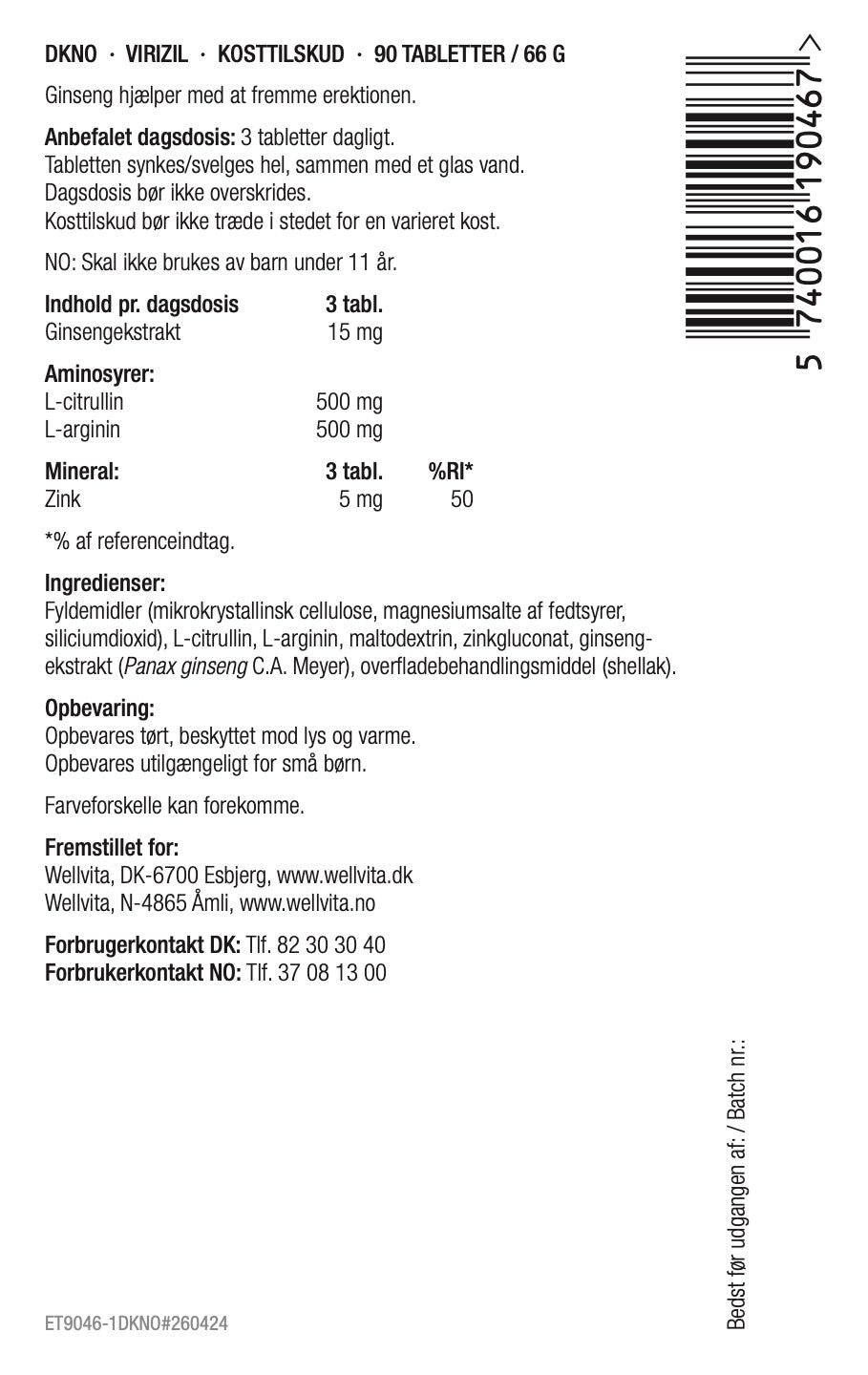 Anbefalet dagsdosis (voksne): 3 tabletter dagligt.